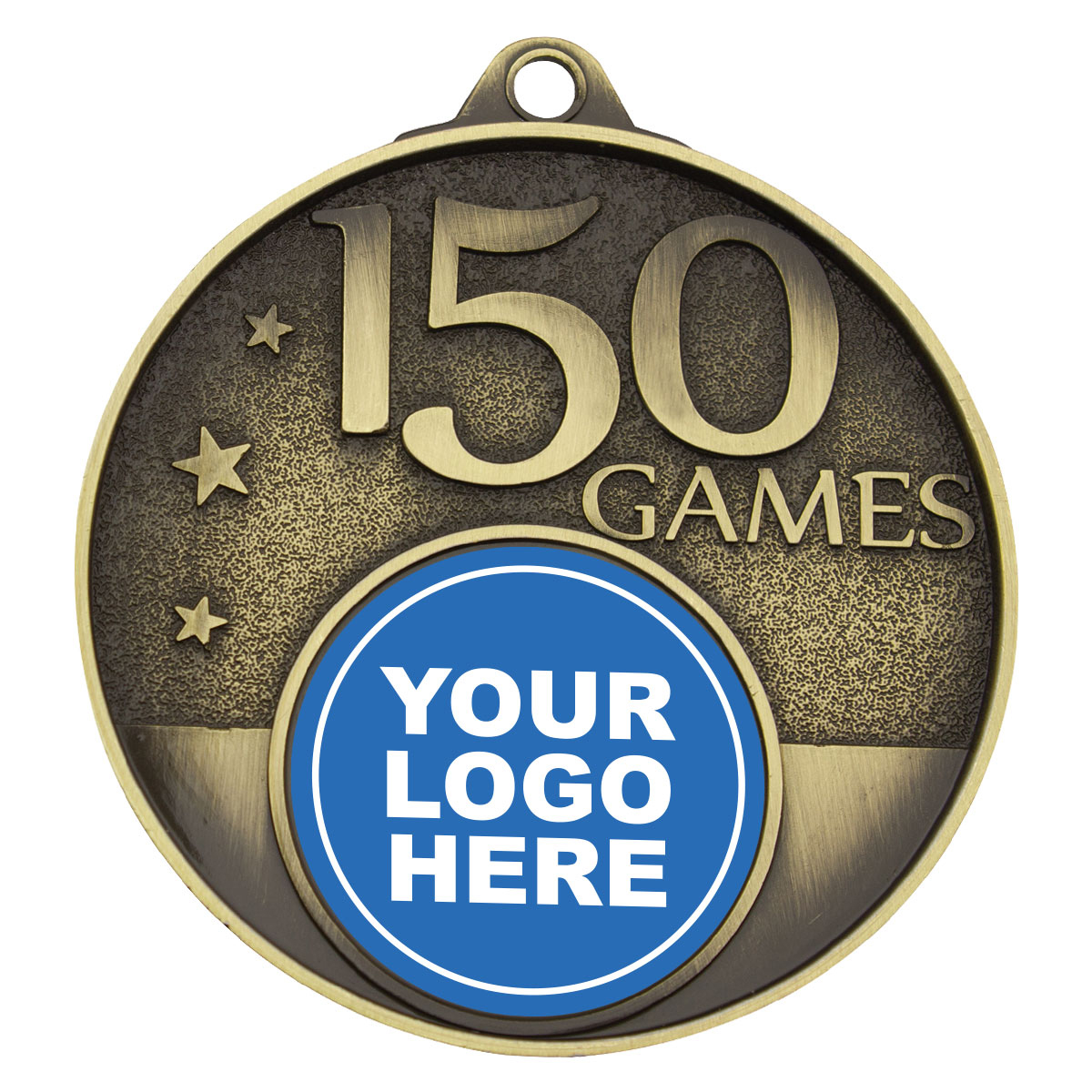 Gold medal is a fantastic award choice to recognise the milestone of playing 150 games - with the added option to include an insert to represent your club logo.