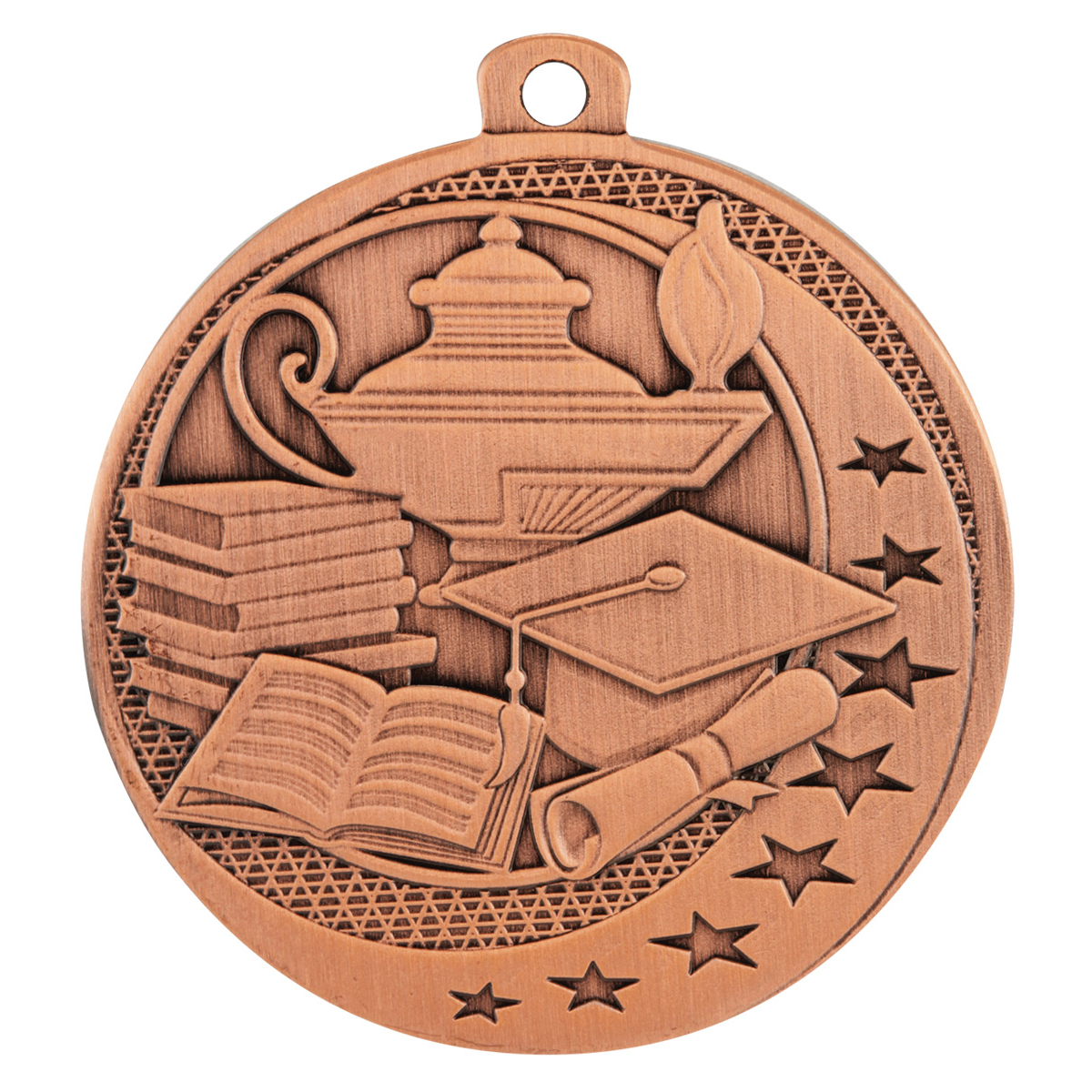 Wayfare medals offer an affordable range of stylish star-inspired medals for different sports & activities. Academic medal features iconic lamp of knowledge, books and graduation elements.