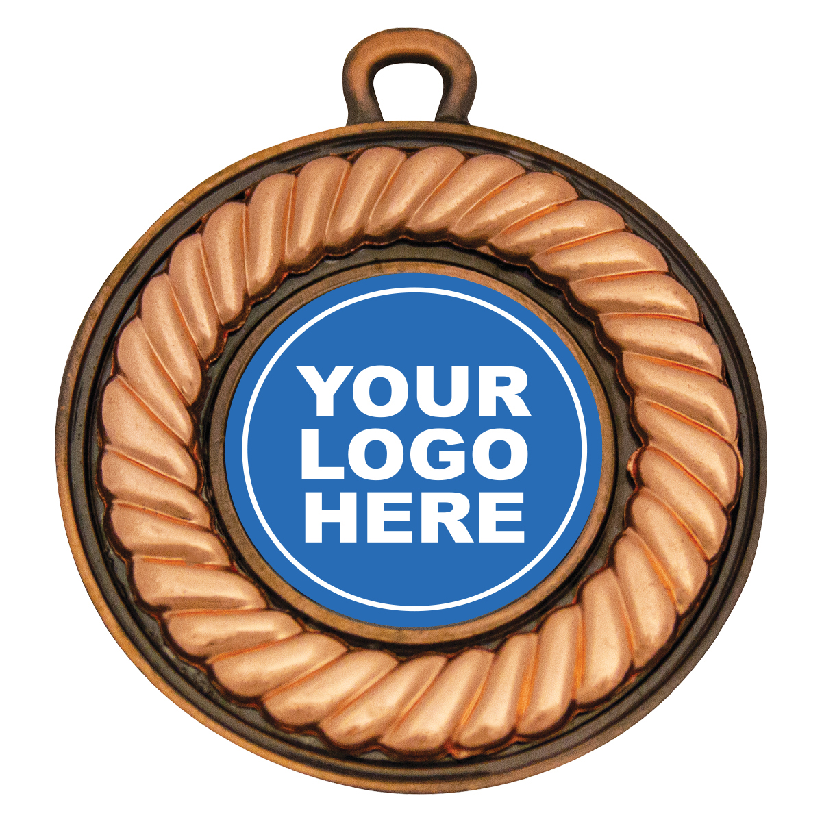 Price includes custom printed logo insert, neck ribbon and engraved plate on back of medal