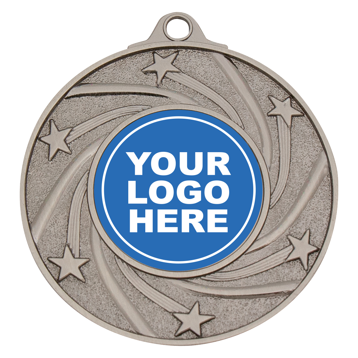 Price includes custom printed logo insert, neck ribbon and engraved plate on back of medal