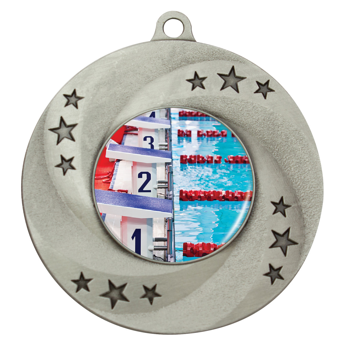 The 'Astral' star inspired design presents an attractive medal to show off the Swimming insert.