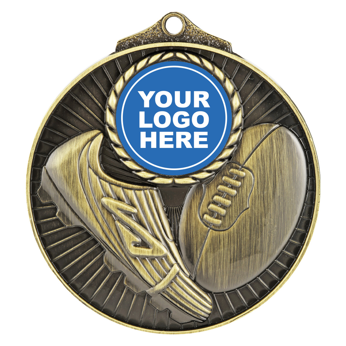 Bold medal for Aussie Rules with the option of including your 25mm custom logo.