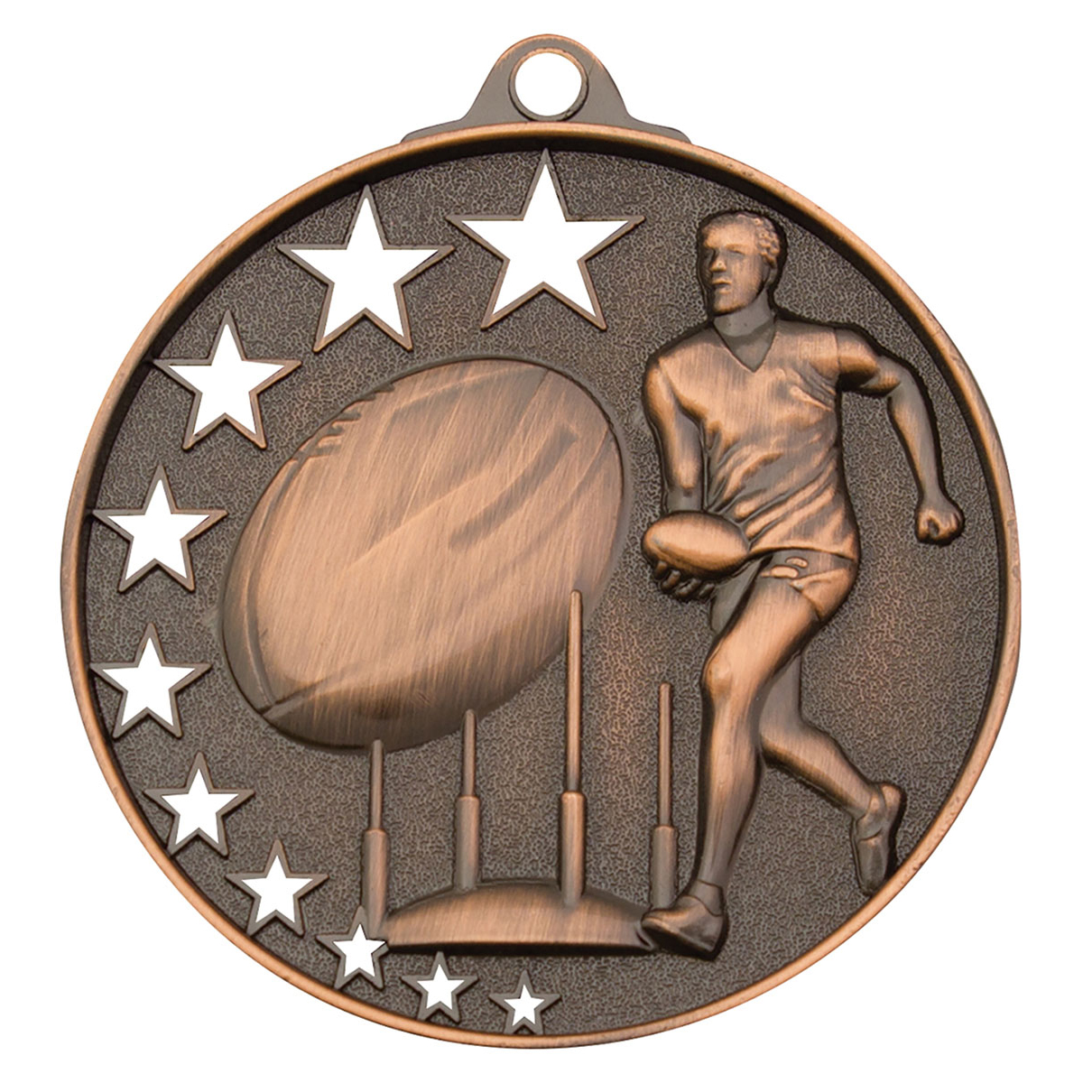 Bright medals for your Aussie Rules teams and clubs. A popular medal series, the Star Series features a unique hollow multi-star design and extra thick edge. There is rectangle panel on the back of the medal for your engraving.
