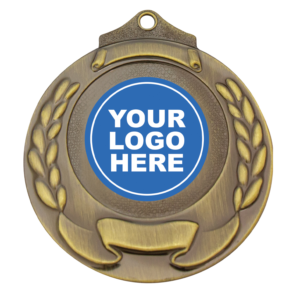 Banner Wreath medal series with space for 25mm insert. Available in gold, silver and bronze.