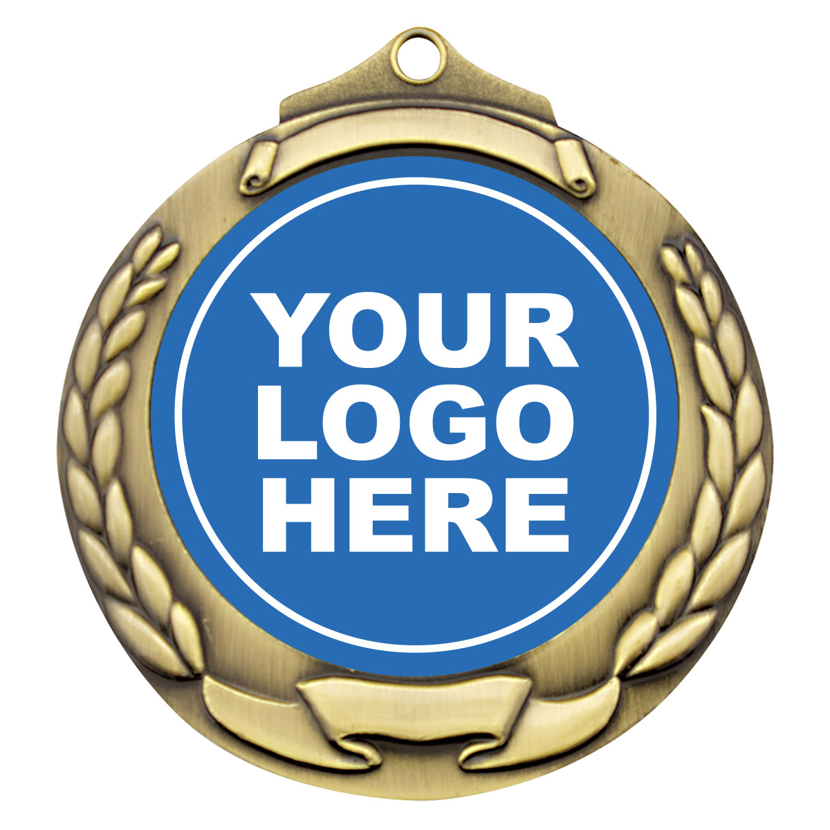 Price includes custom printed logo insert, neck ribbon and engraved plate on back of medal
