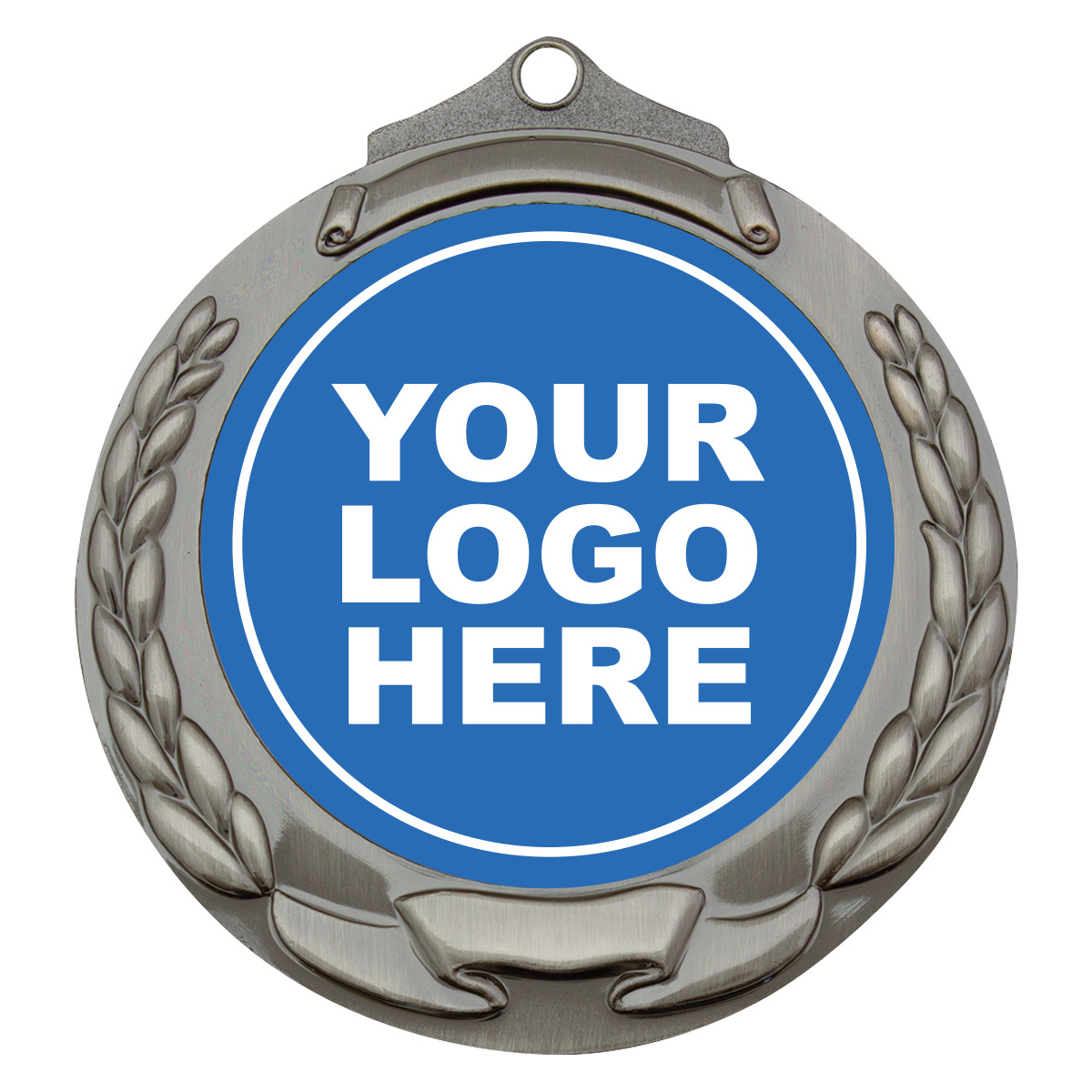 Price includes custom printed logo insert, neck ribbon and engraved plate on back of medal