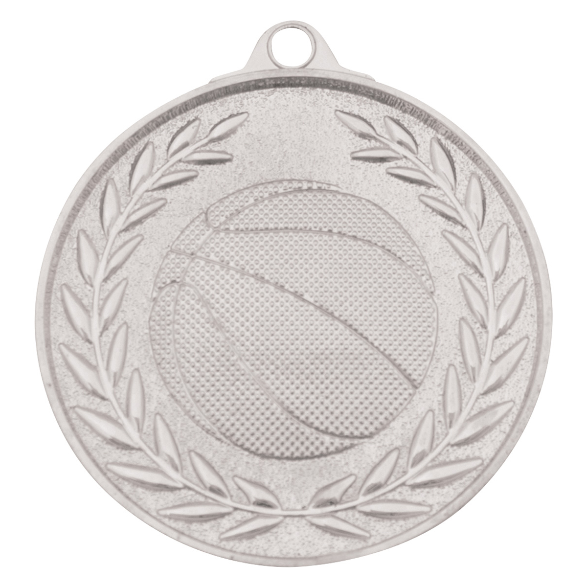 Classic & traditional wreath inspired medals for Basketball. A generic theme suitable for all players, medal design features the iconic ball and celebratory wreath representing high achievement.