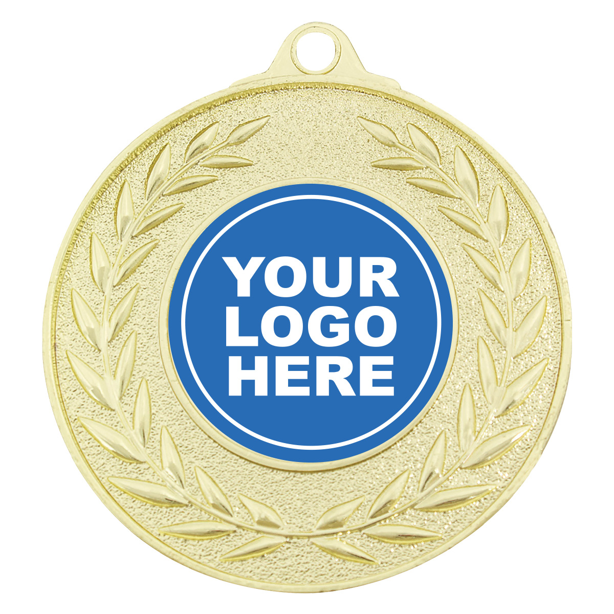 Price includes custom printed logo insert, neck ribbon and engraved plate on back of medal