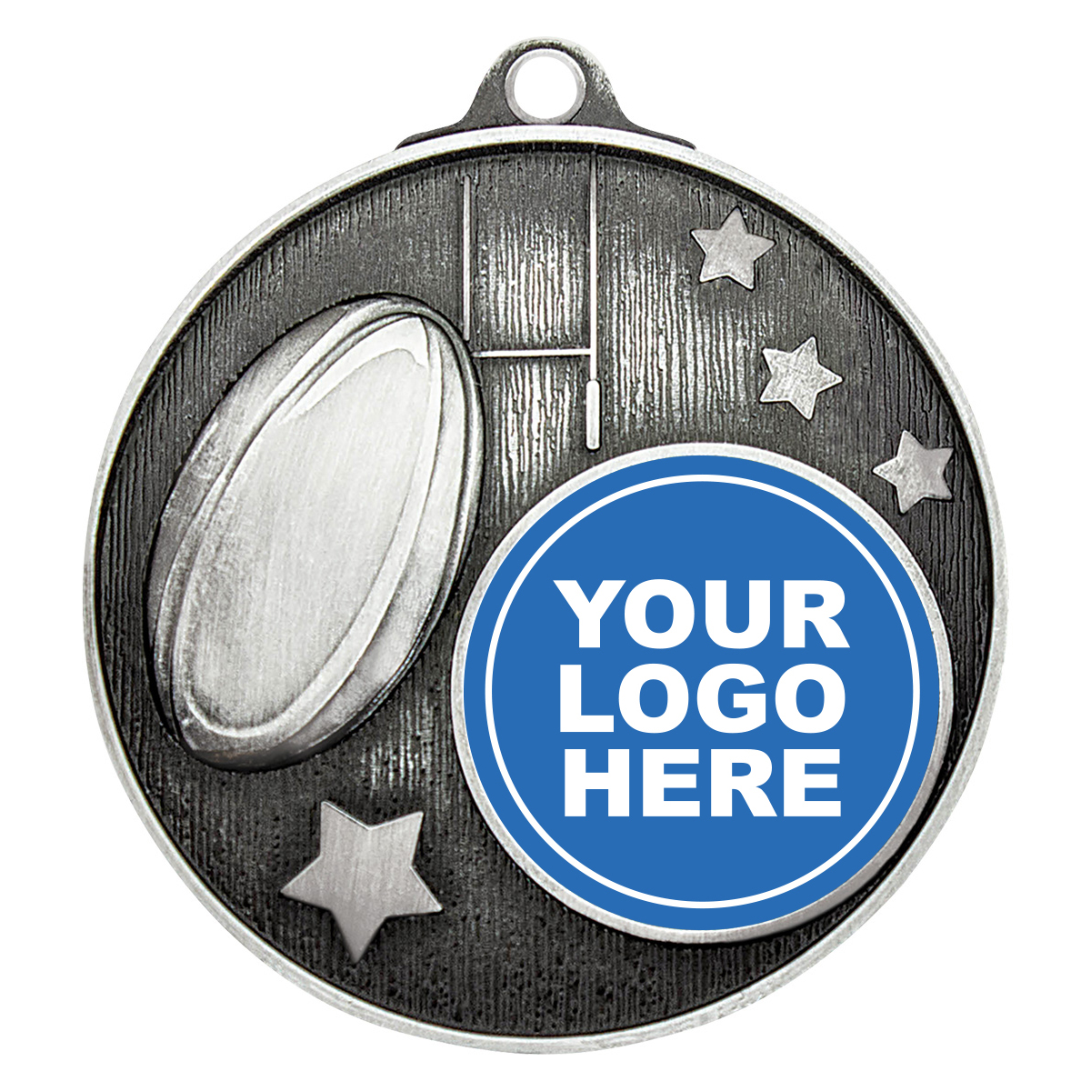 Club Medals designed to specifically show off your custom logo insert. Medal design features iconic elements for Rugby League & Union. Ideal for various events and competitions - available in gold and silver.