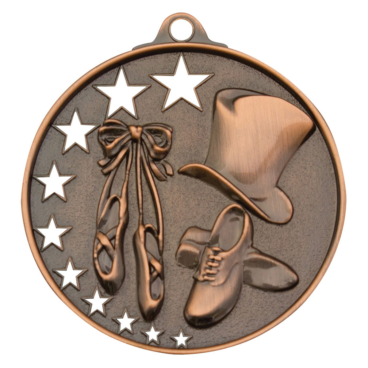 Bright medals for Dance. A popular medal series, the Star Series features a unique hollow multi-star design and extra thick edge. There is a rectangle panel on the back of each medal for your engraving.