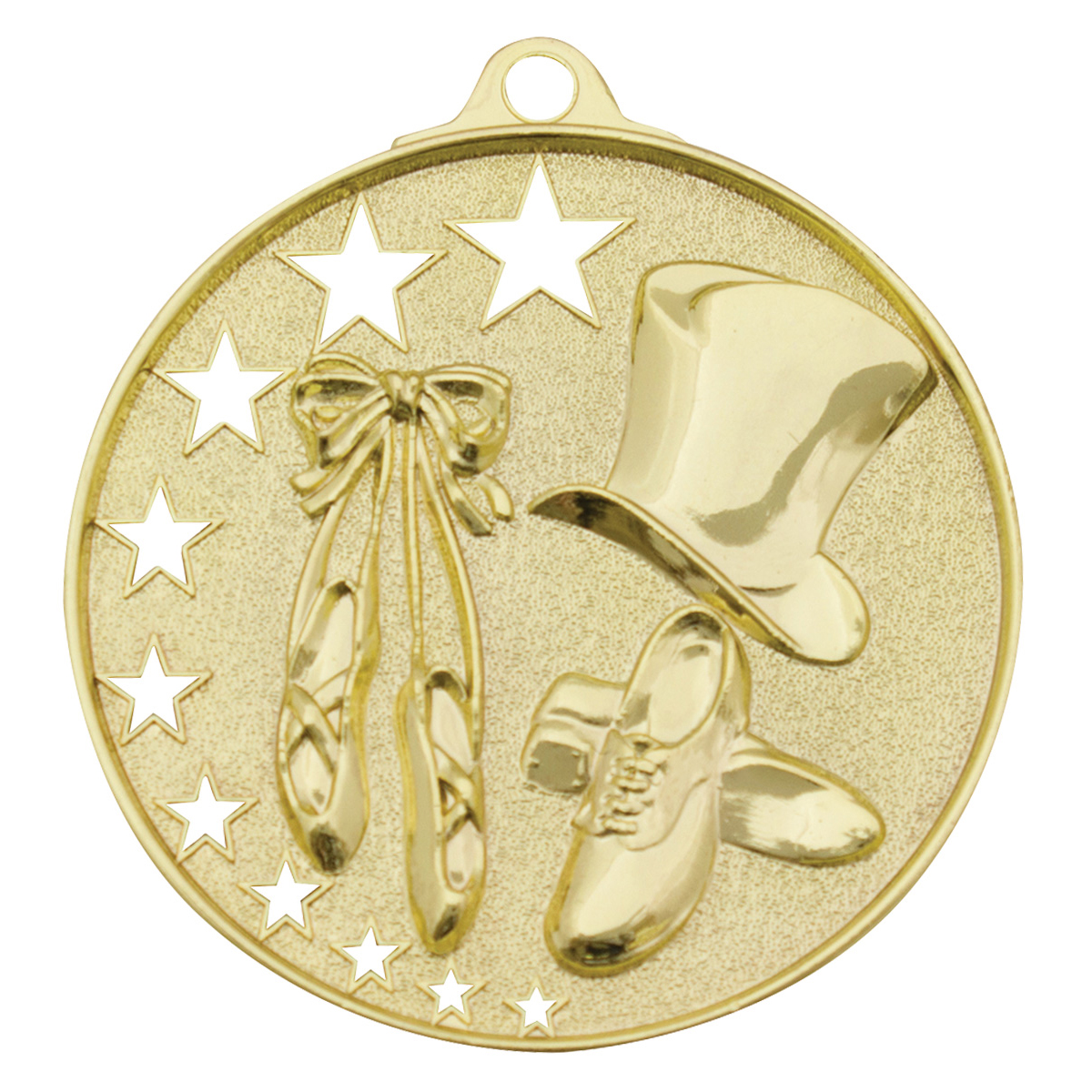 Bright medals for Dance. A popular medal series, the Star Series features a unique hollow multi-star design and extra thick edge. There is a rectangle panel on the back of each medal for your engraving.