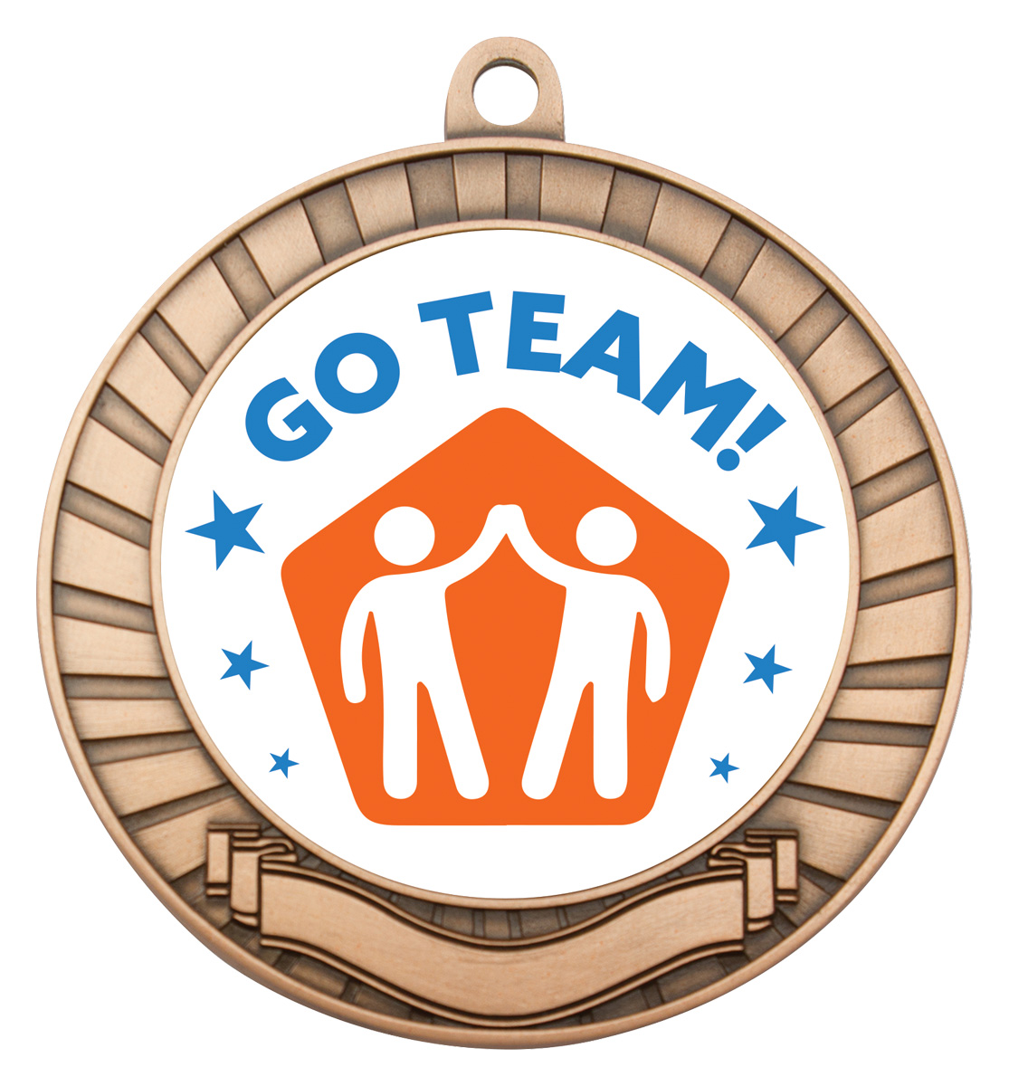 Engraving / Printing Laser engraved black text on 2ply label matched to medal colour.
