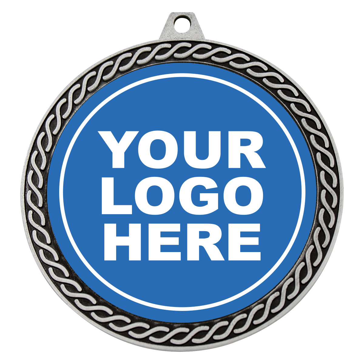 Elegantly designed medal that frames your custom logo to celebrate your event or achievement.