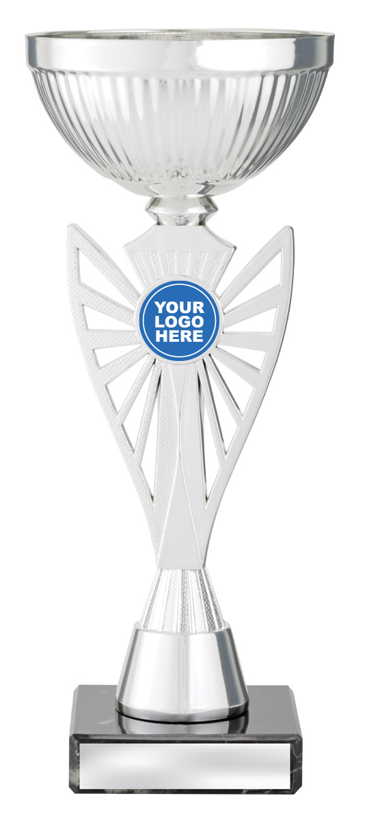 Gemini cups offer value and fantastic design of trophy with prominent space for logo - perfect for a range of awards. Metal bowl with plastic stem and marble base.
