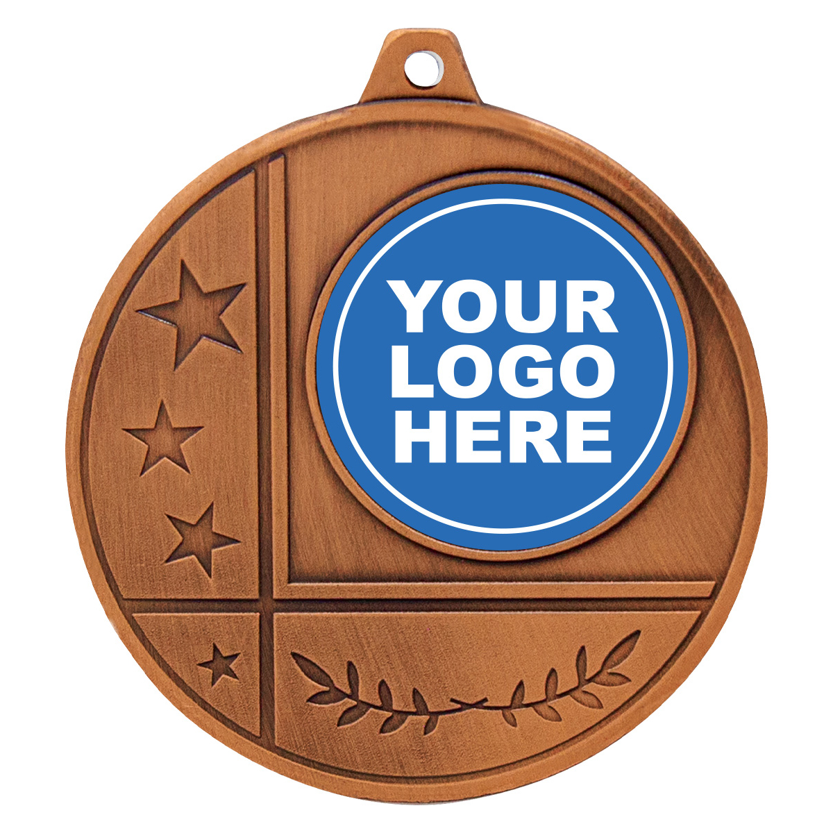 Price includes custom printed logo insert, neck ribbon and engraved plate on back of medal