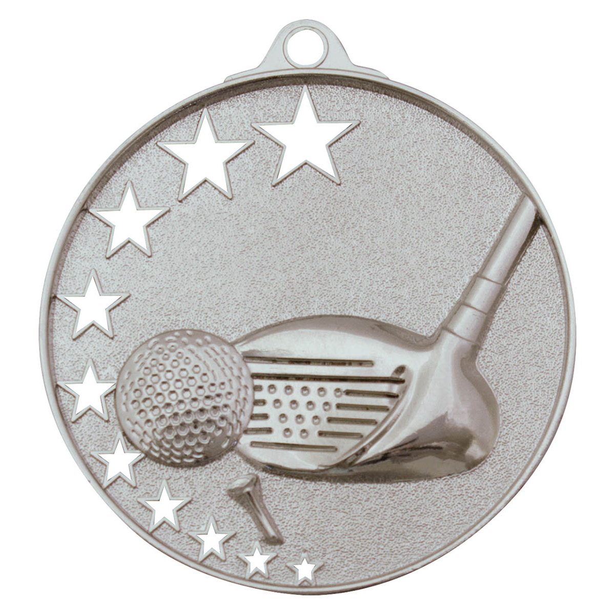 Bright medals for Golf. A popular medal series, the Star Series features a unique hollow multi-star design and extra thick edge. There is a rectangle panel on the back of each medal for your engraving.