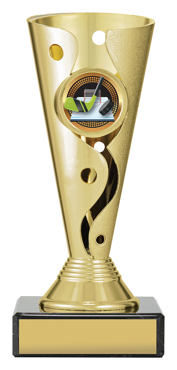 Carnival plastic cups present a distinctive cup style trophy with attractive design - on classic black marble base for your engraving.
