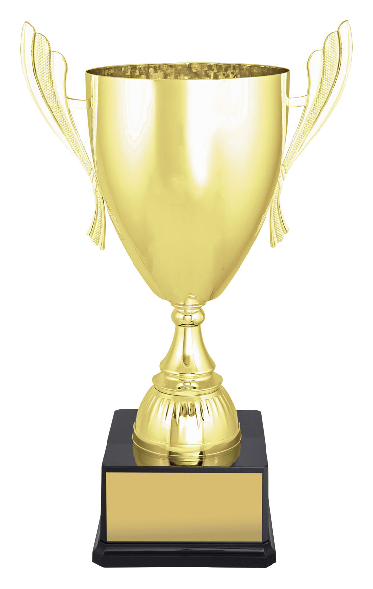 Impressive range of bright gold cups offer variety of sizes to suit your particular award requirements. The elegant and bold design of the cups makes this series well suited to many different sports and activities. Excellent value over 6 different sizes - metal bowl with plastic stem and base.