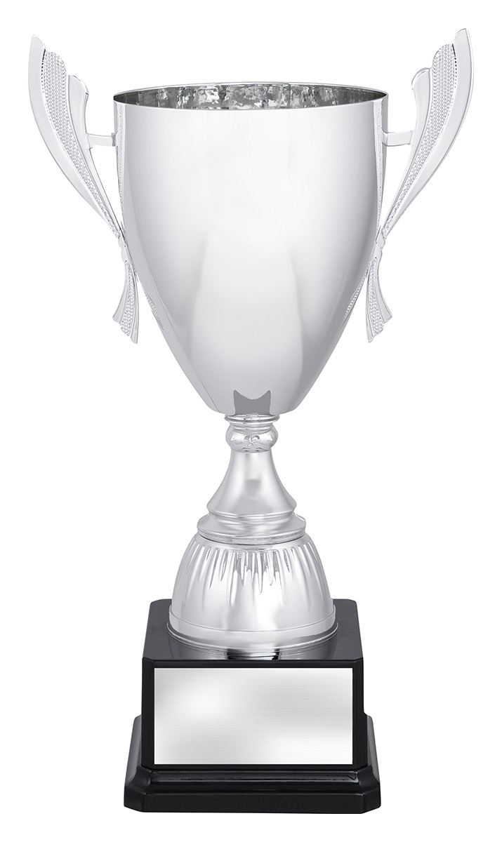 Impressive range of bright silver cups offer variety of sizes to suit your particular award requirements. The elegant and bold design of the cups makes this series well suited to many different sports and activities. Excellent value over 6 different sizes - metal bowl with plastic stem and base.