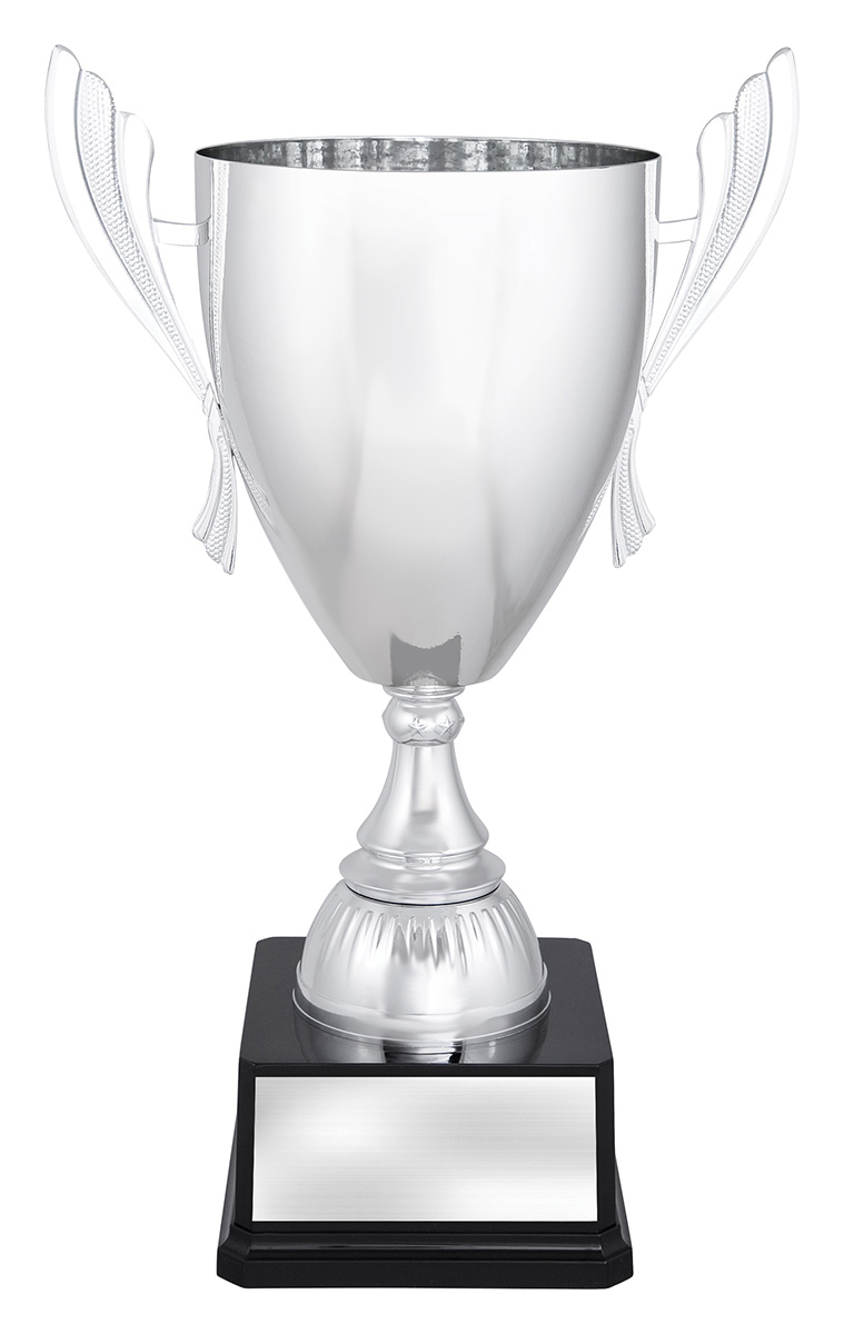 Impressive range of bright silver cups offer variety of sizes to suit your particular award requirements. The elegant and bold design of the cups makes this series well suited to many different sports and activities. Excellent value over 6 different sizes - metal bowl with plastic stem and base.
