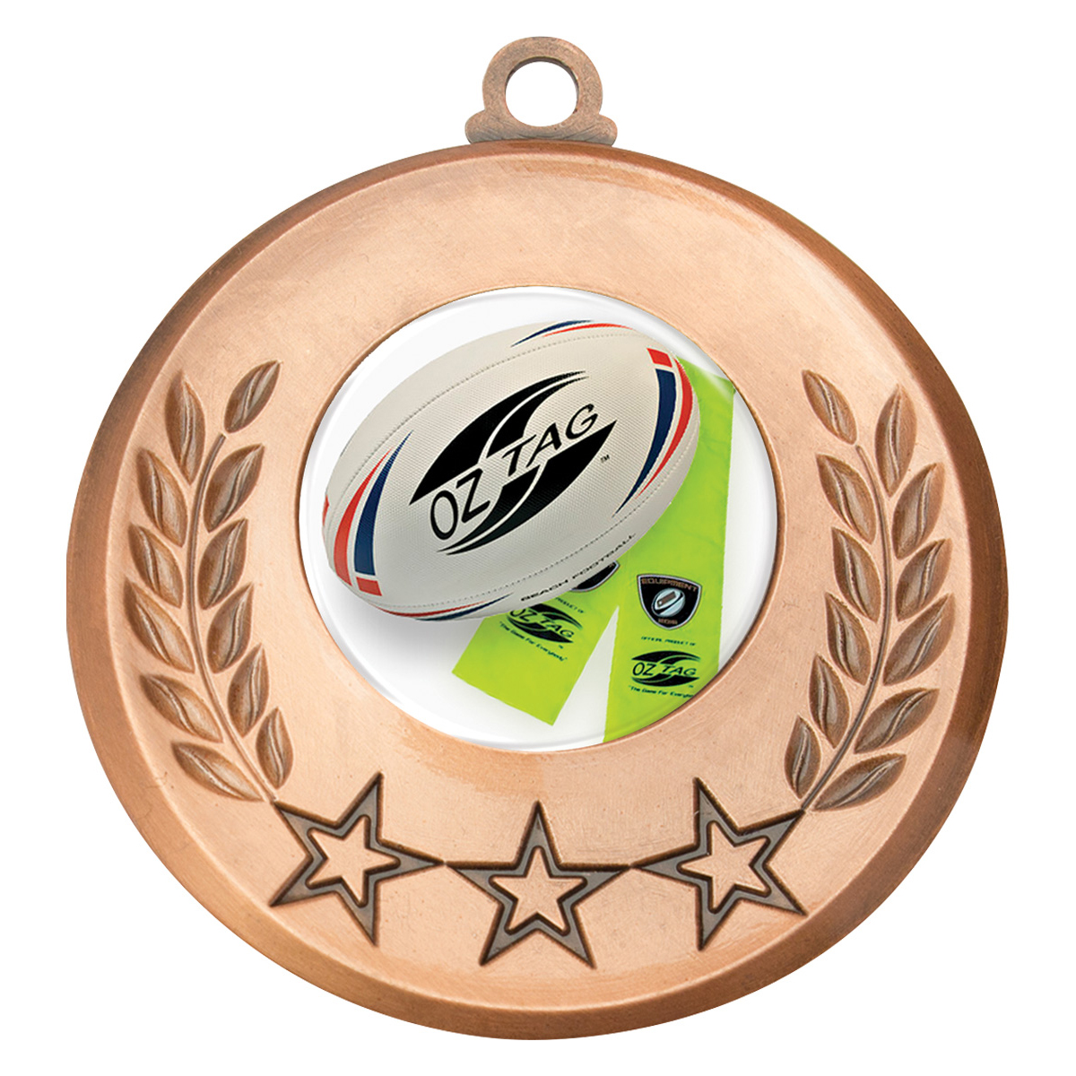 Engraving / Printing Laser engraved black text on 2ply label matched to medal colour.