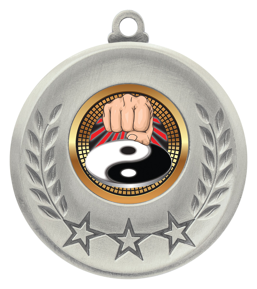 Engraving / Printing Laser engraved black text on 2ply label matched to medal colour.
