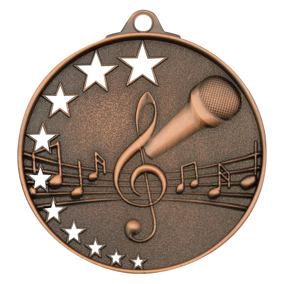Bright medals for Music. A popular medal series, the Star Series features a unique hollow multi-star design and extra thick edge. There is a rectangle panel on the back of each medal for your engraving.