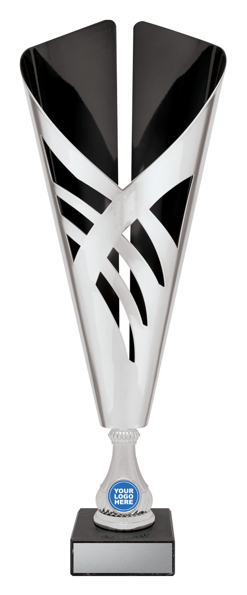 Phantom Cups offer a brilliant design of trophy cup with differing colour elements and a stand out 3D laser cut style. Metal bowl, plastic stem and marble base.