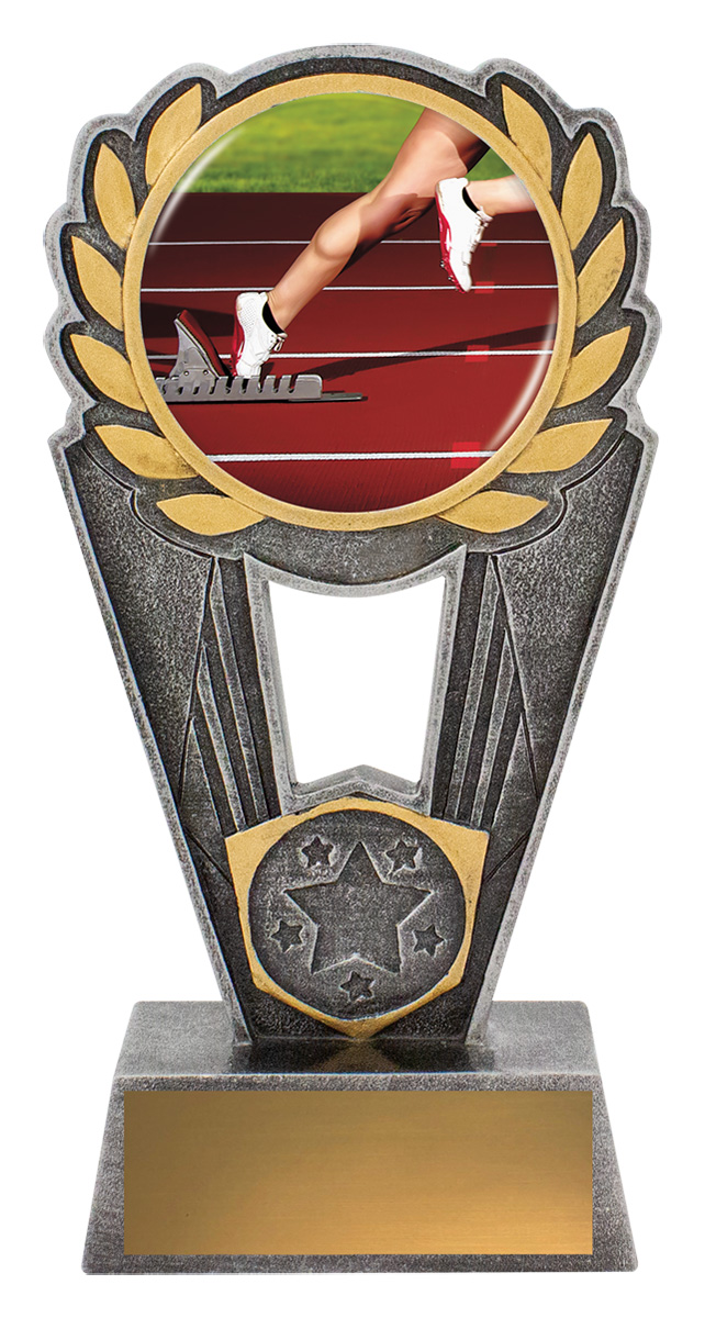 Polaris series offers a striking design of trophy with excellent options for personalisation. Trophies showcase a sprinting theme over a number of sizes. Space for your 25mm logo if required.