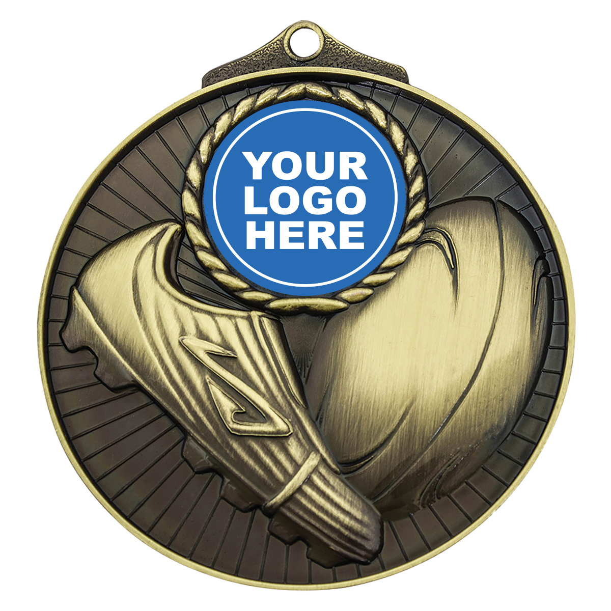 A more substantial medal with theme design for rugby league or union and with ideal position for your centre insert.