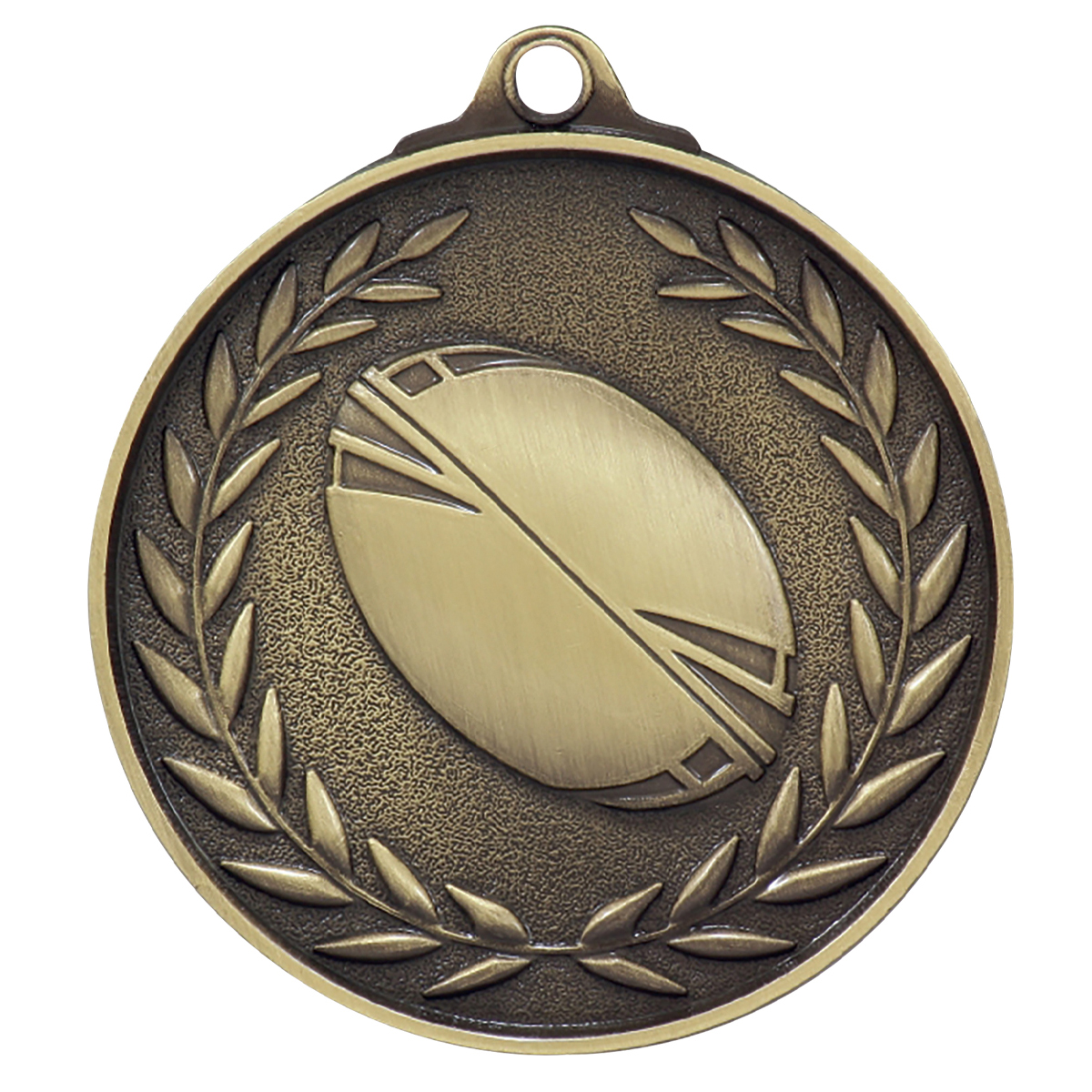 Classic & traditional wreath inspired medals for Rugby League. A generic theme suitable for all players, medal design features the iconic ball and celebratory wreath representing high achievement.