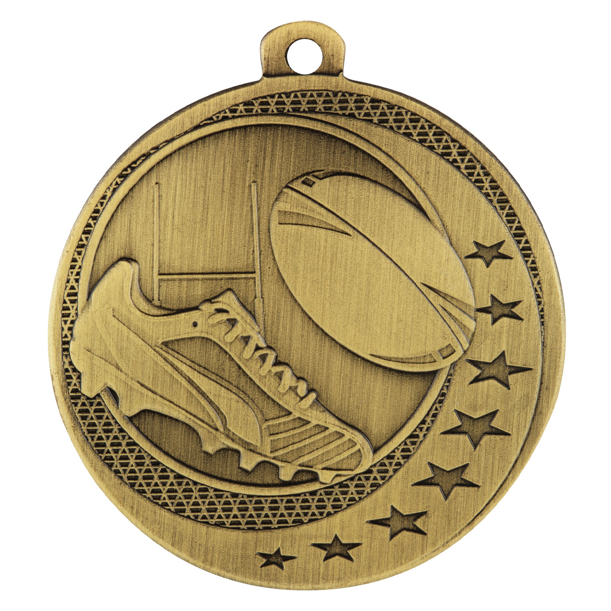 Wayfare medals offer an affordable range of stylish star-inspired medals for different sports & activities. The medal for rugby league or union features iconic elements of boot, ball and posts.