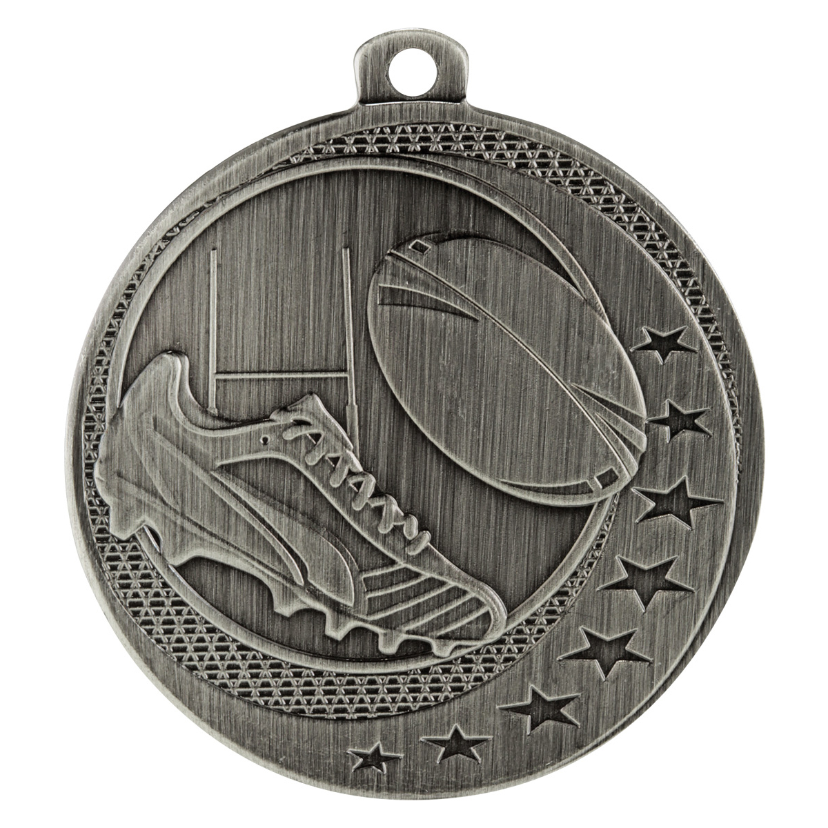 Wayfare medals offer an affordable range of stylish star-inspired medals for different sports & activities. The medal for rugby league or union features iconic elements of boot, ball and posts.