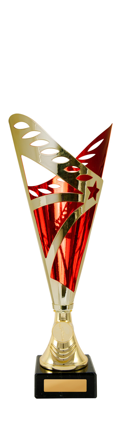 Modern design, great value metal cup. Plastic stem and marble base.