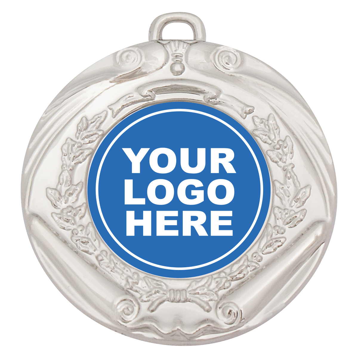 Price includes custom printed logo insert, neck ribbon and engraved plate on back of medal