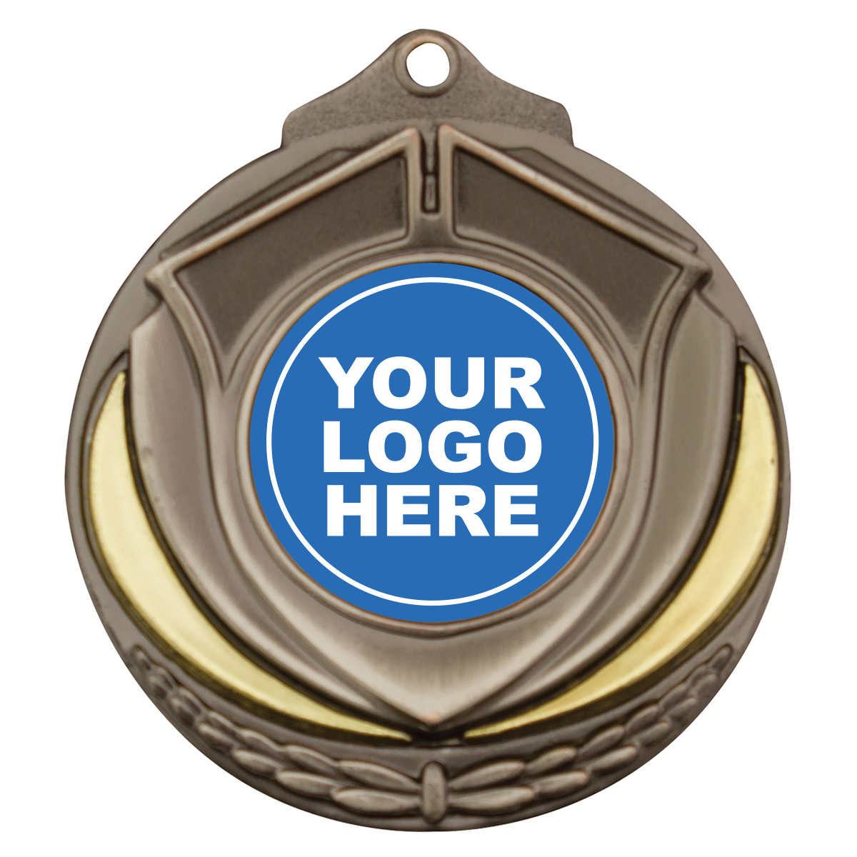 The Shield Medal series is available in gold, silver and bronze. Popular and versatile medals feature an elegant design that shows off your logo or insert.