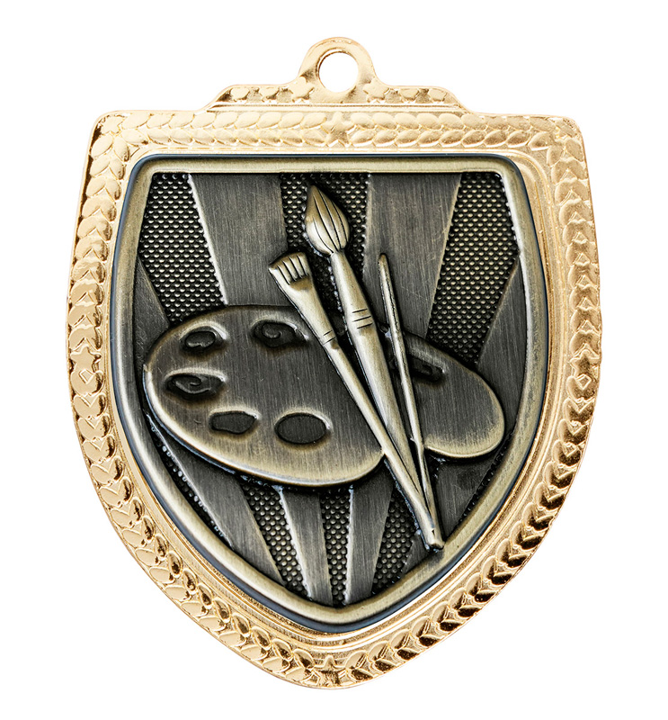 Engraving / Printing Laser engraved black text on 2ply label matched to medal colour.