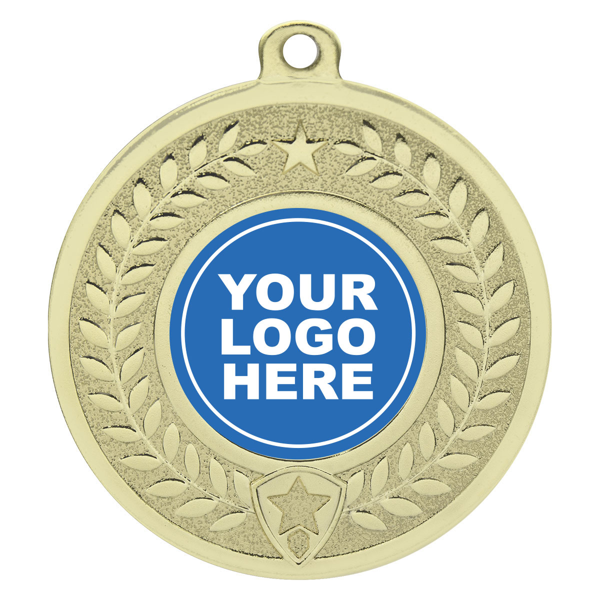 Price includes custom printed logo insert, neck ribbon and engraved plate on back of medal