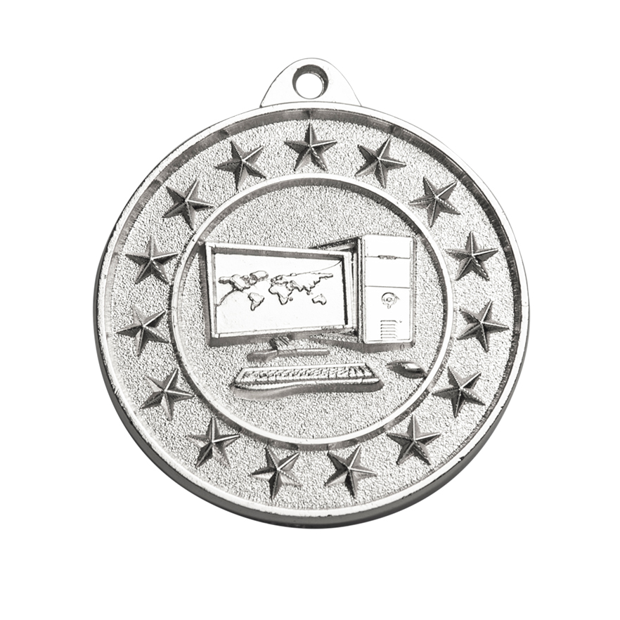 Engraving / Printing Laser engraved black text on 2ply label matched to medal colour.