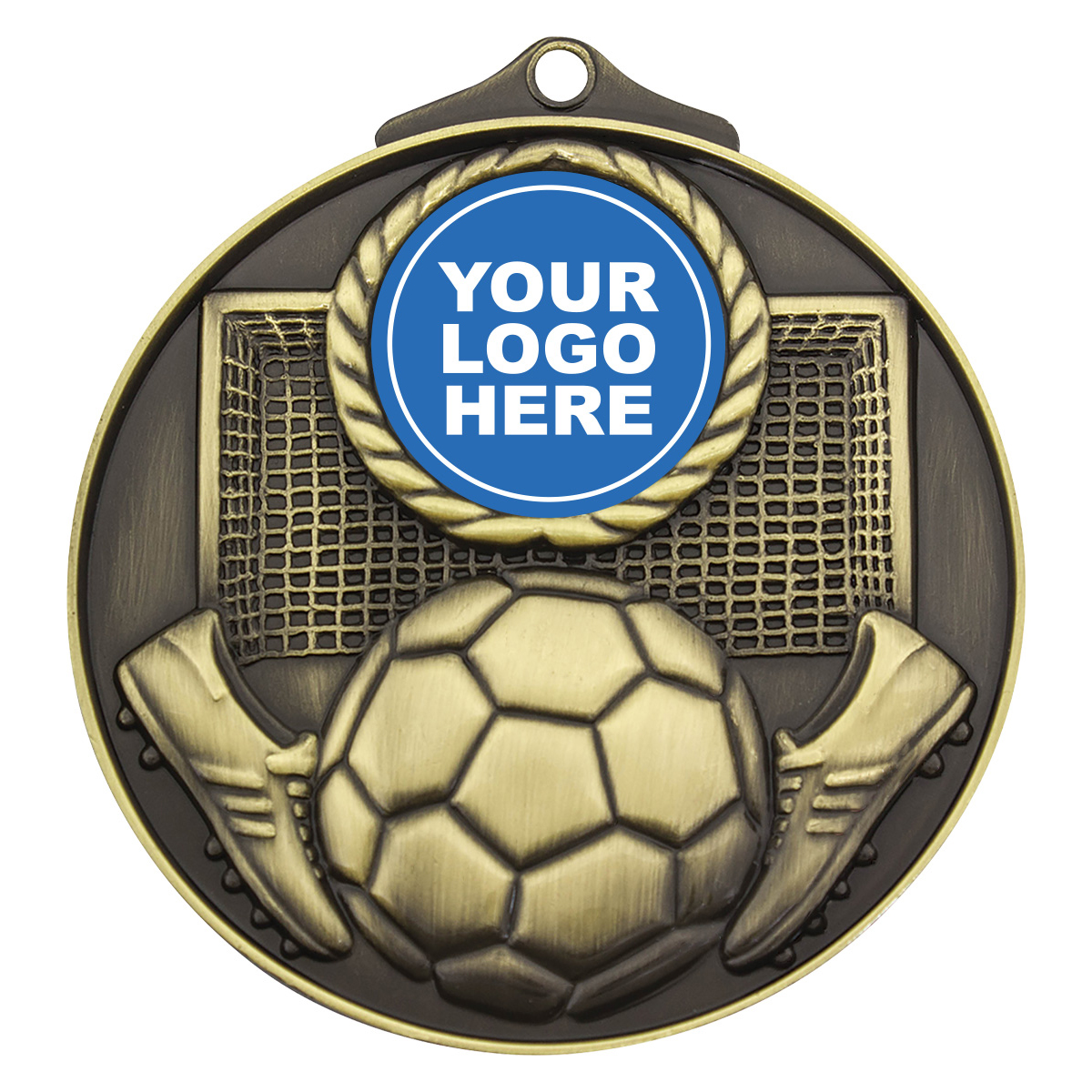 Large size medal for soccer in gold or silver. Space for 25mm insert to acknowledge your club logo.