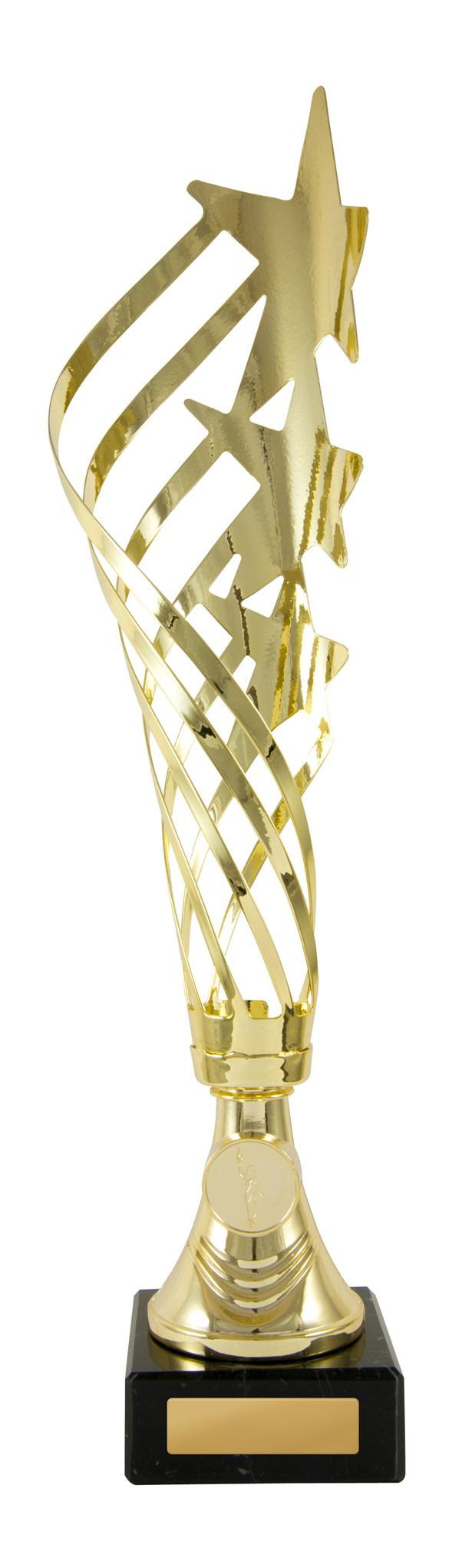 Modern design, great value metal cup. Plastic stem and marble base.