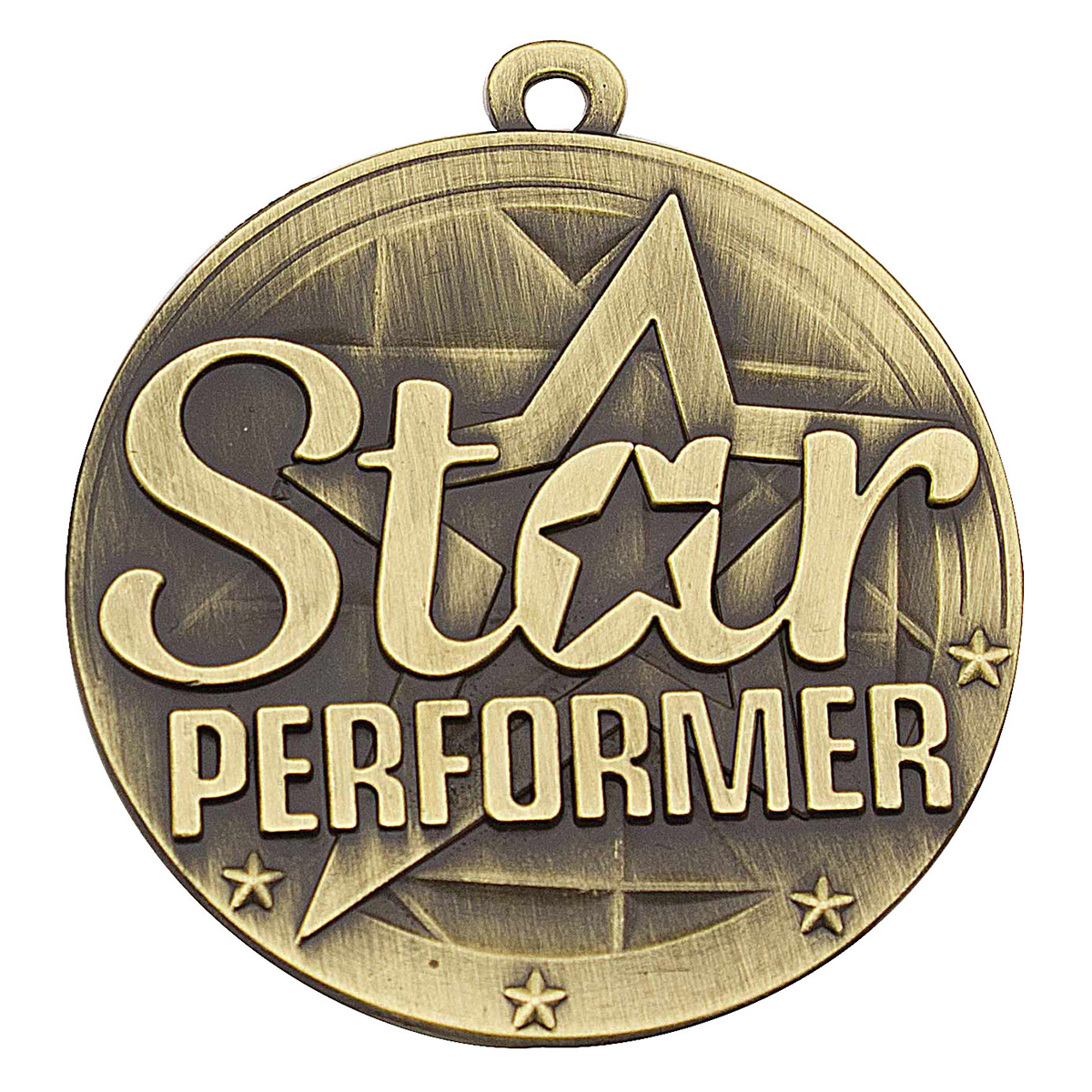 WatchWord series of medals comprises of several different designs featuring bold words and phrases. The Star Performer version is a vibrant theme with stars and stylised background.