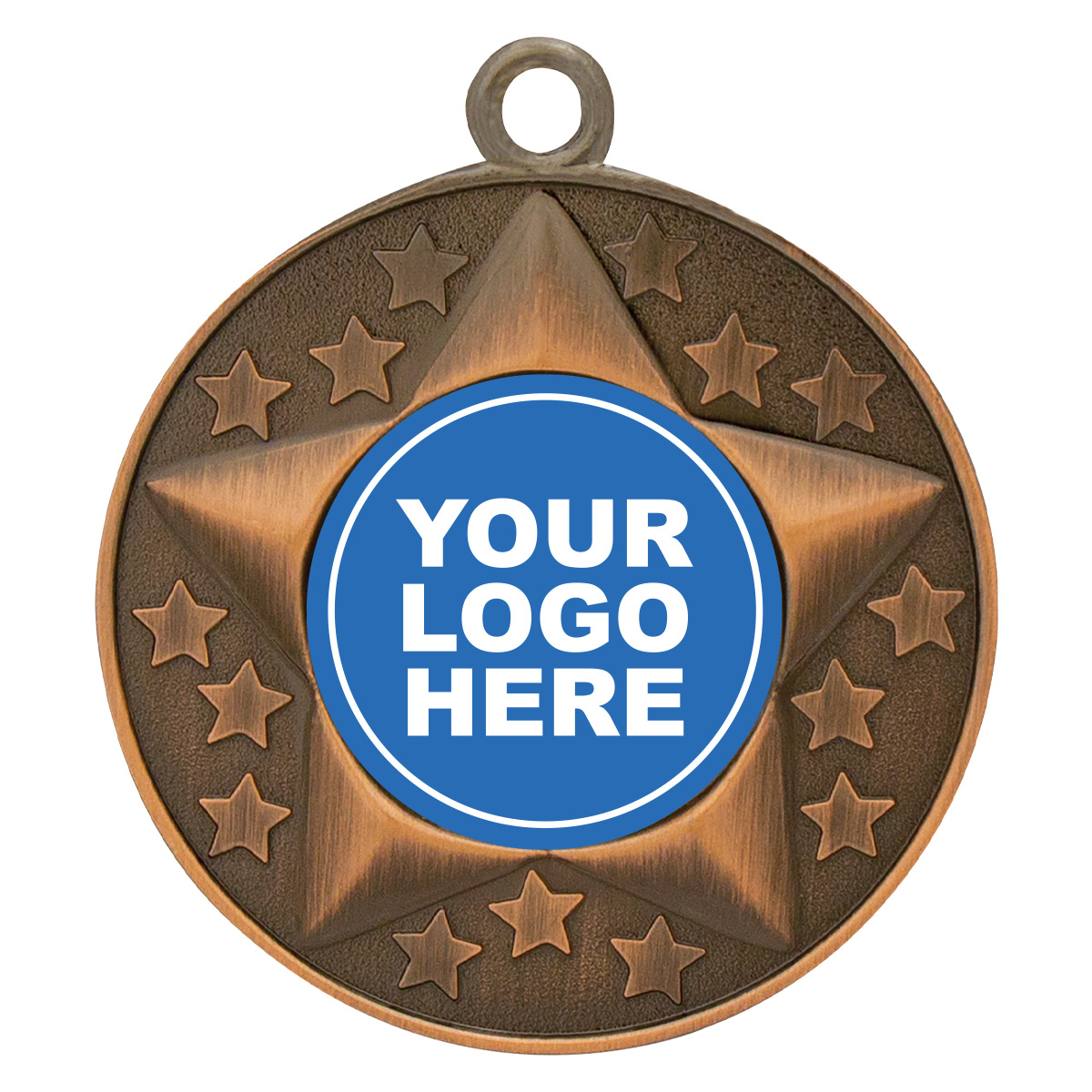 Star Medal design with space for 25mm insert. Available in gold, silver and bronze.