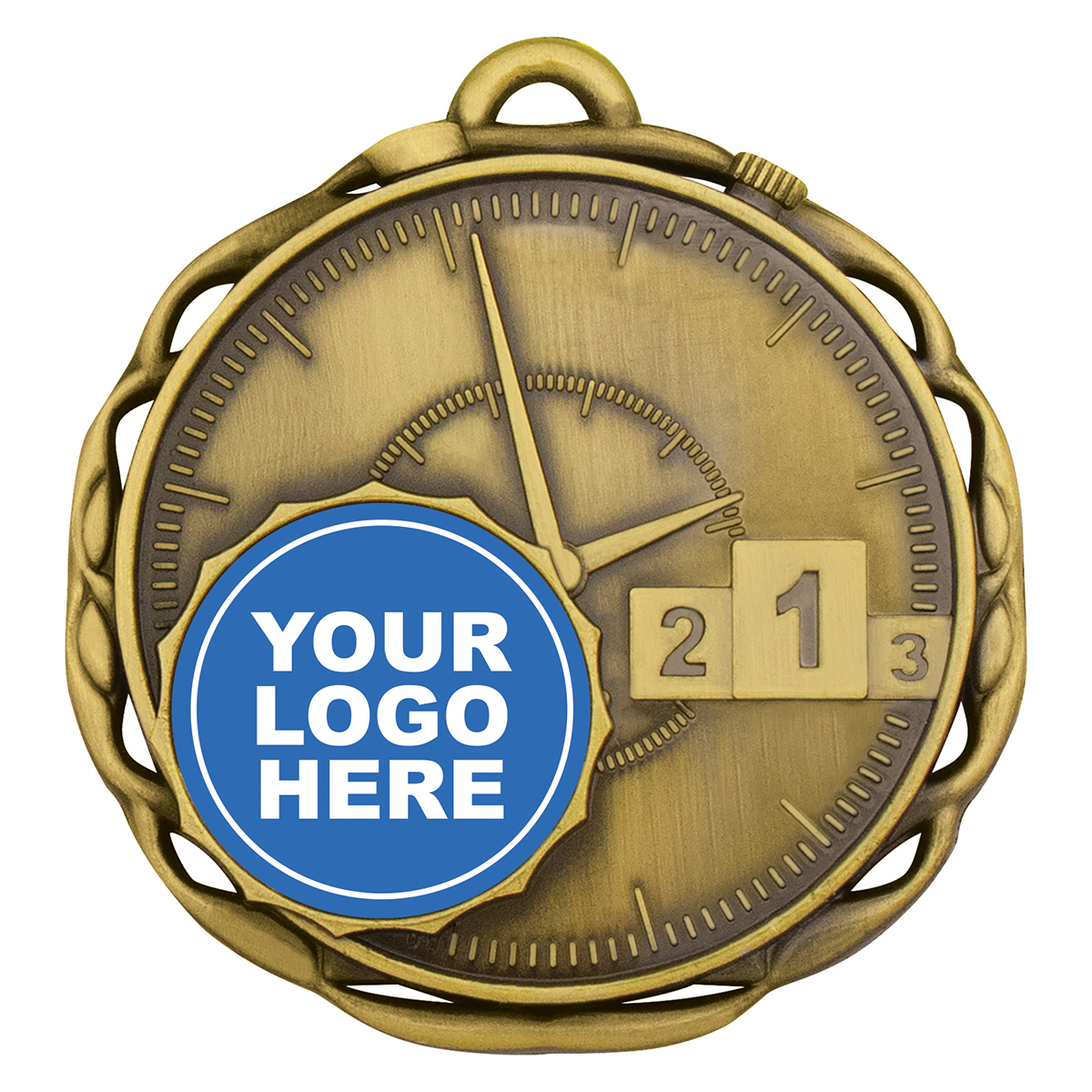 Price includes custom printed logo insert, neck ribbon and engraved plate on back of medal