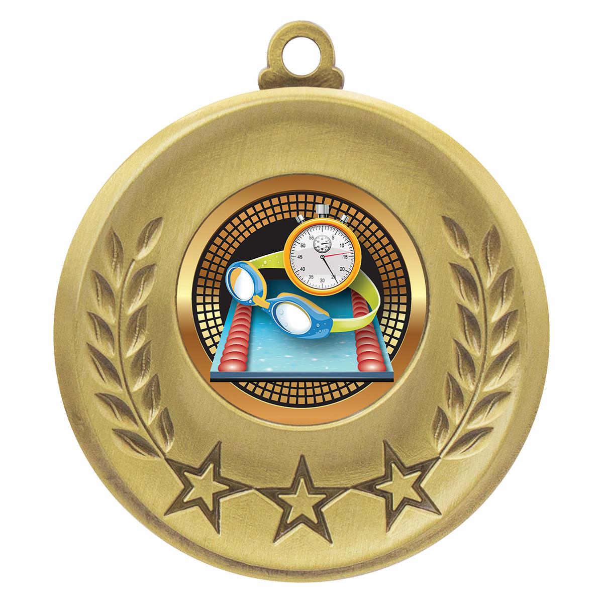 Engraving / Printing Laser engraved black text on 2ply label matched to medal colour.