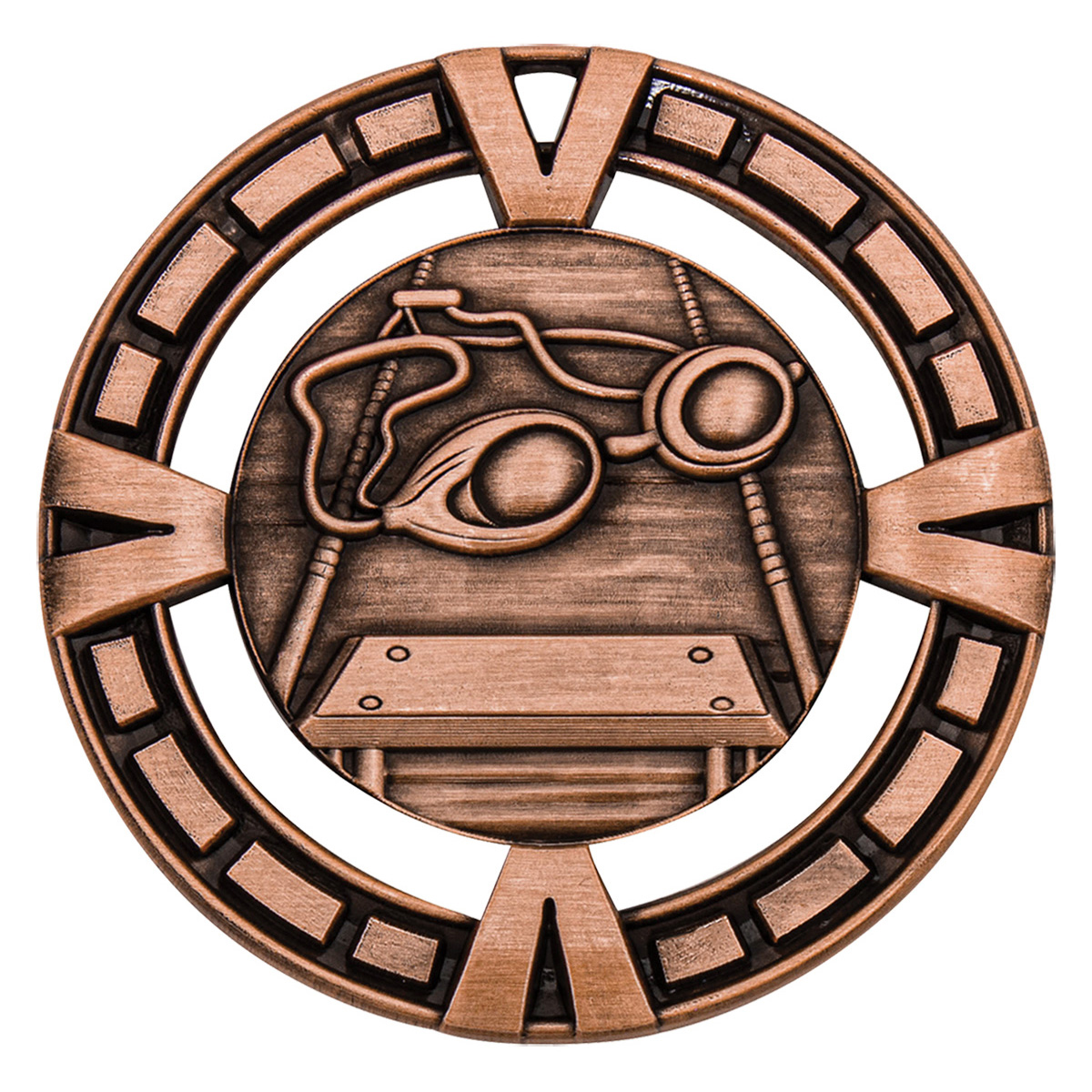 Series of outstanding medals in range of different sports and activities. Excellent value in this swim medal series, medals are a bigger size than average. Different, eye-catching design of medal for swimming events and competitions.