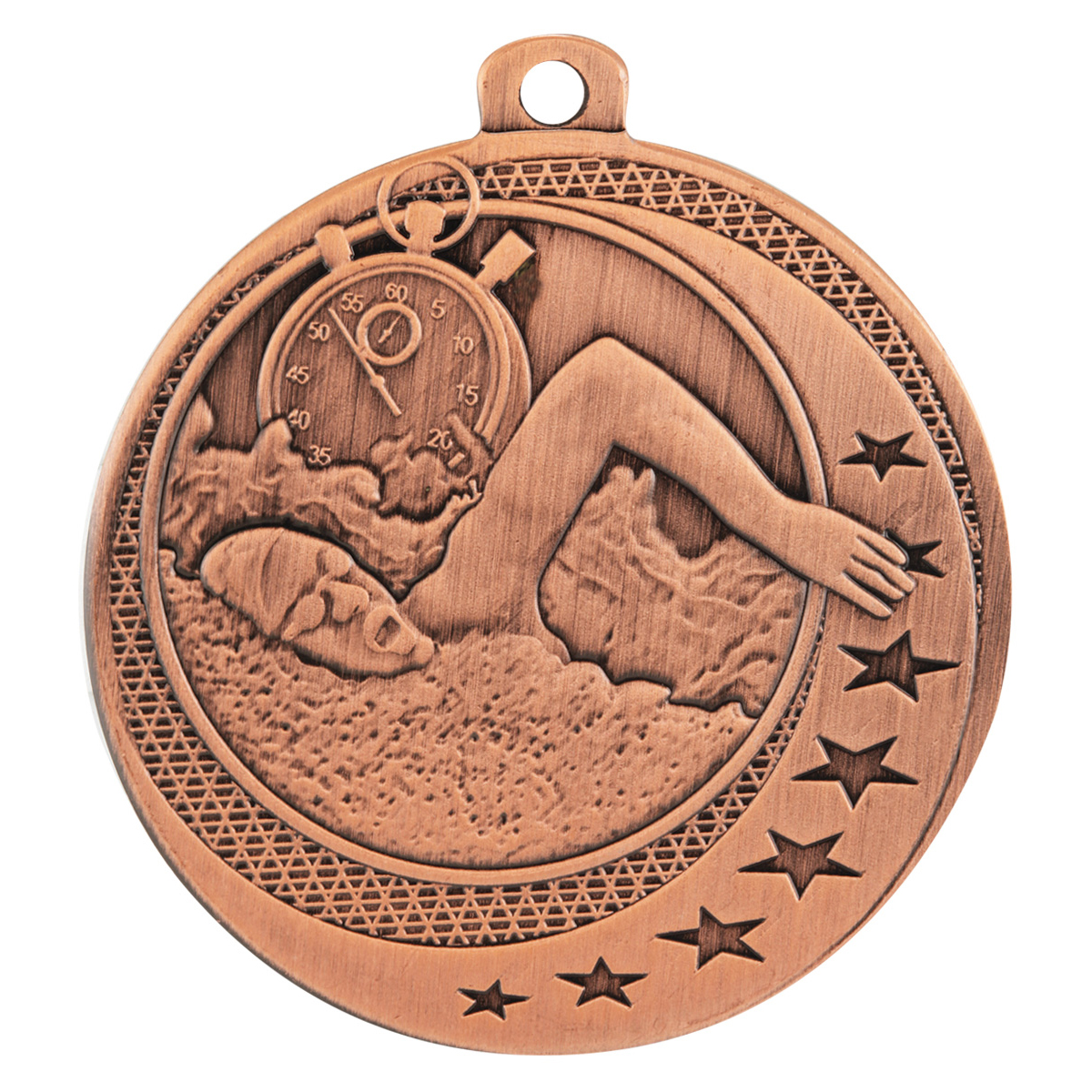 Wayfare medals offer an affordable range of stylish star-inspired medals for different sports & activities. Swimming medals feature swimmer in action against stop-watch background.
