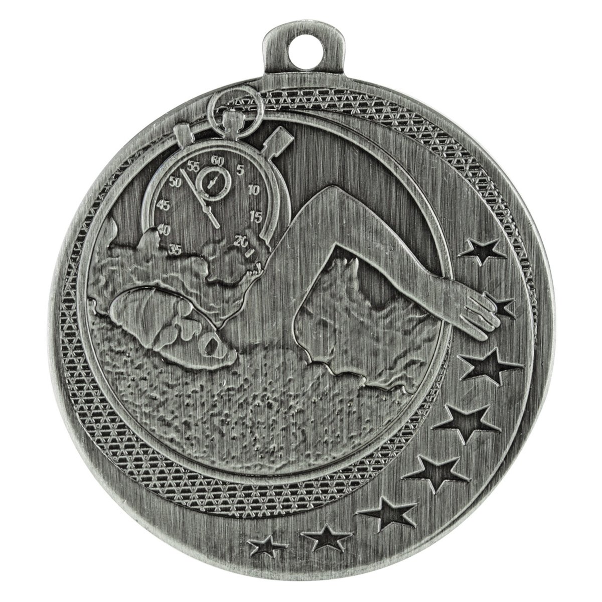 Wayfare medals offer an affordable range of stylish star-inspired medals for different sports & activities. Swimming medals feature swimmer in action against stop-watch background.