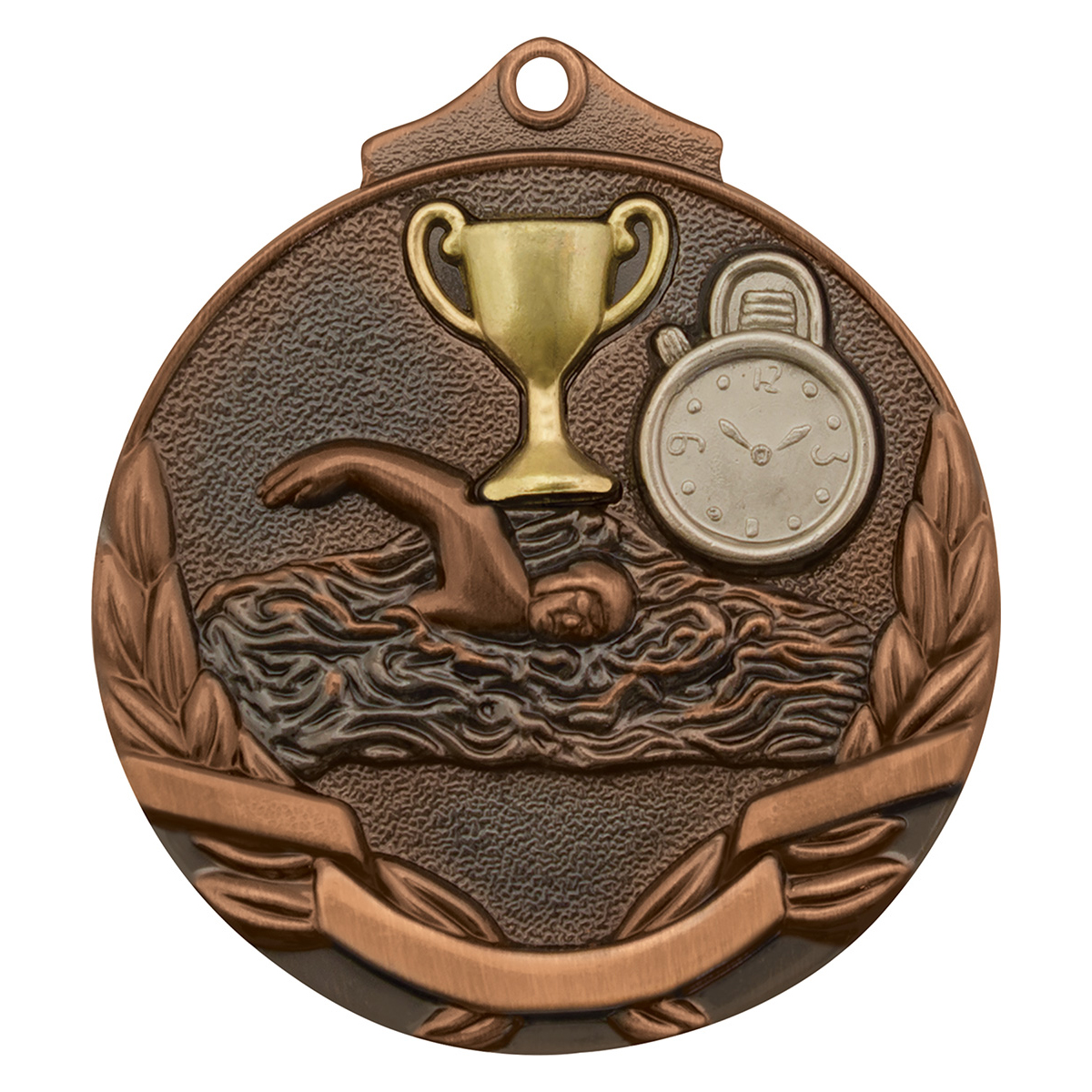 Classic antique medal featuring distinctive two-toned design. Medal a fantastic option for various Swim events with a winners cup inspired design.