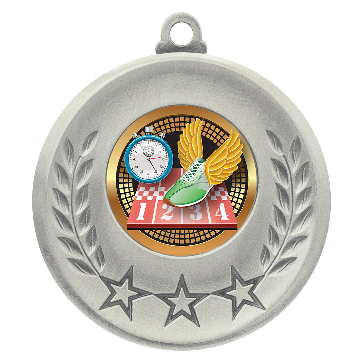 Engraving / Printing Laser engraved black text on 2ply label matched to medal colour.